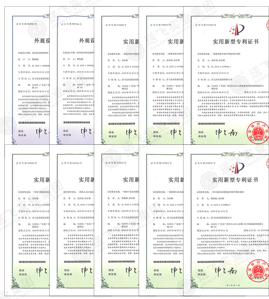 2018年9月10日,我公司(送飞实业集团)已通过国家知识产权局的审批,再次获得实用新型专利8项授权,外观专利2项授权。